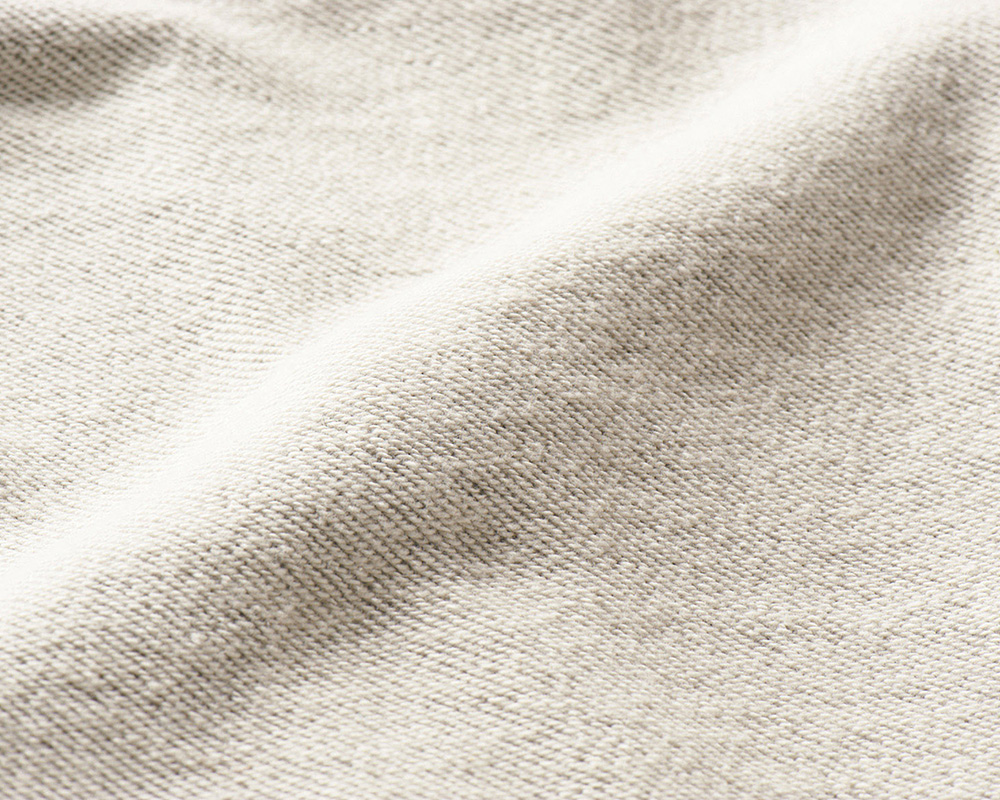 - 裏毛はスウェットに使用される定番の素材です。表はTシャツ類と同じフラットな天竺編みで裏はタオルのようなループ状の組織になっています。パイル状の組織は保温性と吸湿性に富み、スウェットに最適な素材となります。このパイル部分を起毛した素材が裏起毛になります。